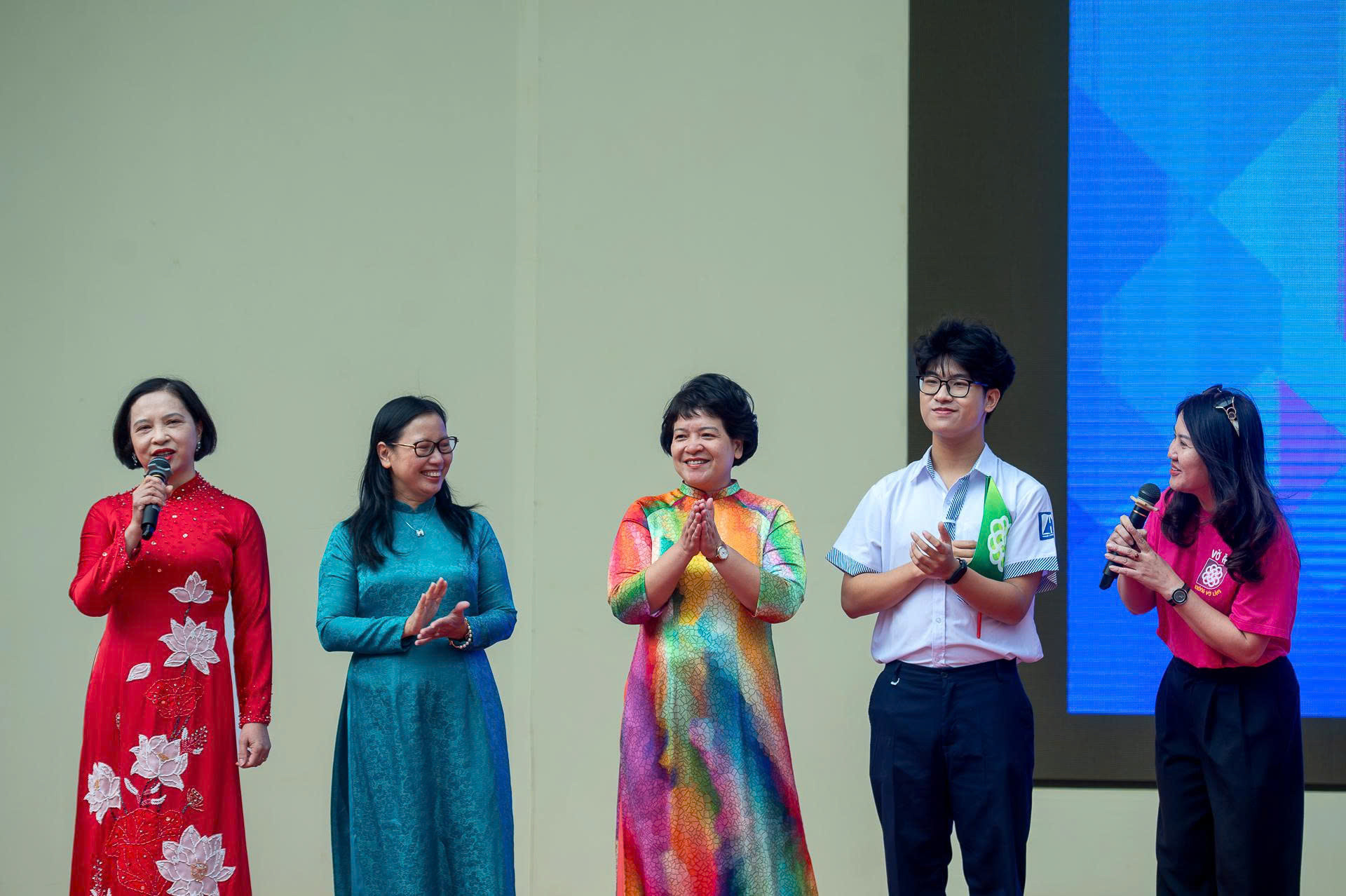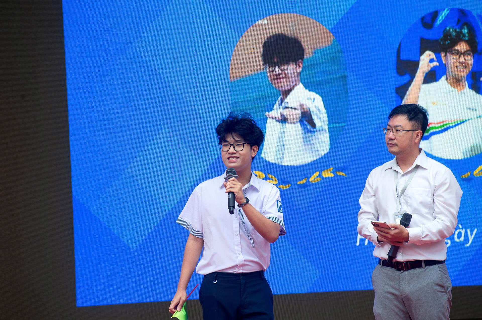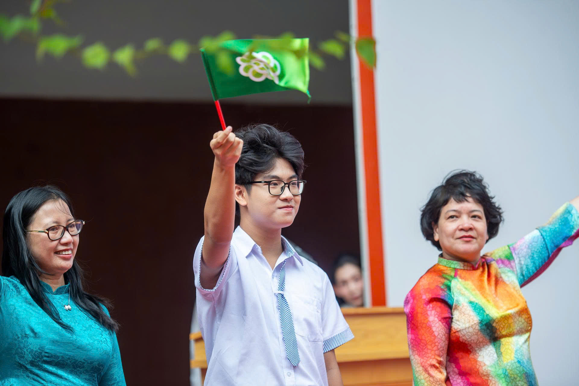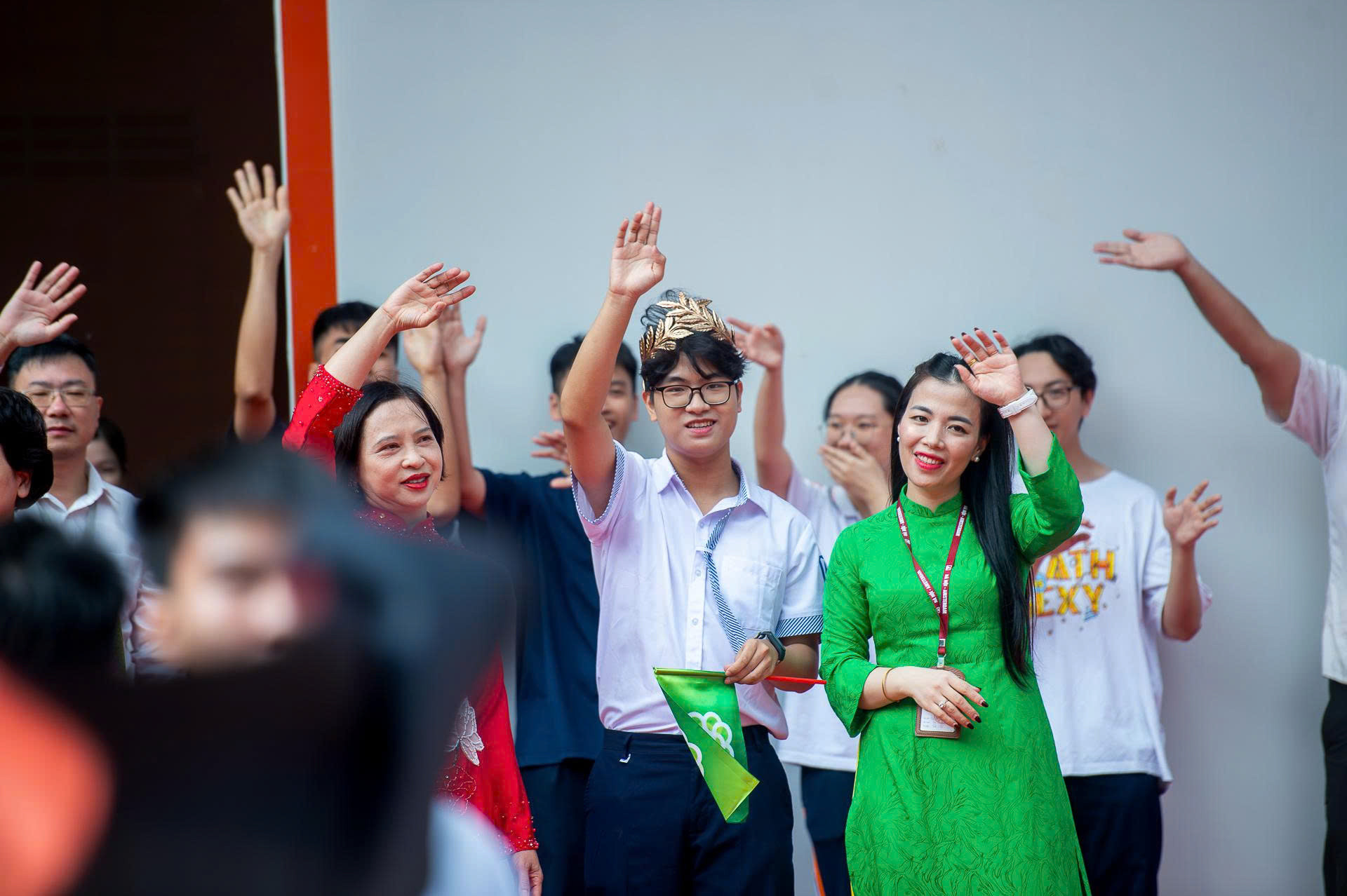 Trở về từ trận chung kết Đường lên đỉnh Olympia 2025, quán quân Trần Bùi Bảo Khánh được bạn bè, thầy cô Trường THPT Chuyên Hà Nội – Amsterdam chào đón nồng nhiệt.