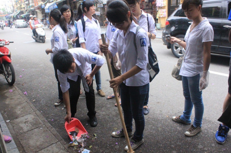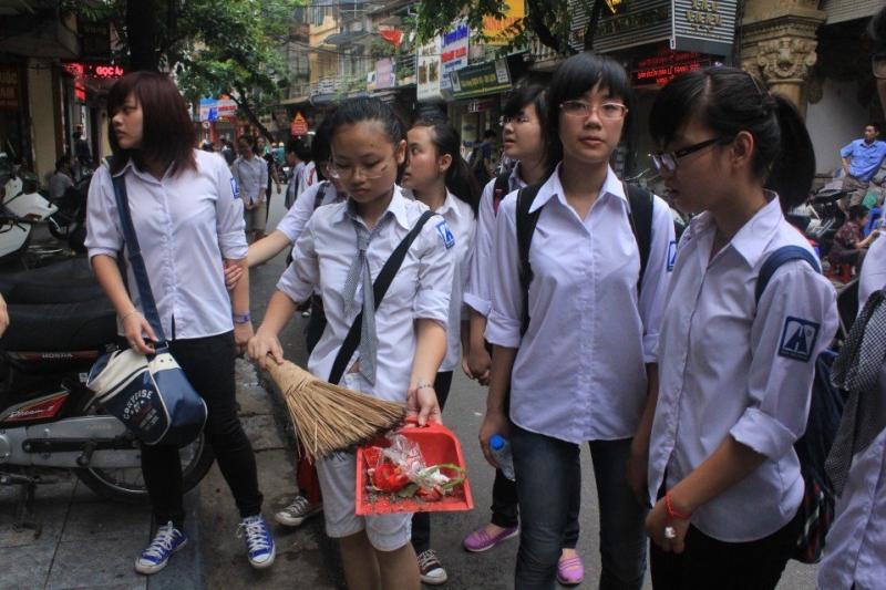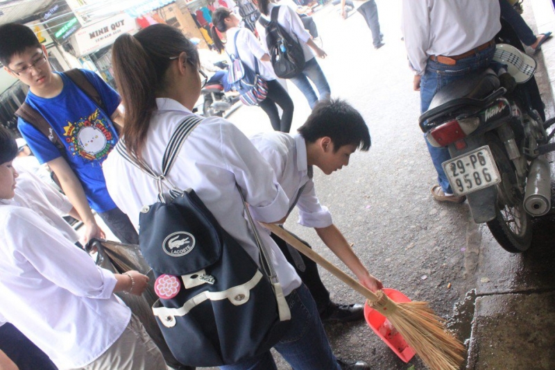 Đi hết một vòng Hồ Gươm, qua công viên Lí Thái Tổ, bọn tớ chuyển sang các khu phố cổ. Vì ở đây tập trung nhiều các khu dân cư, chợ búa nên rác cũng có vẻ nhiều hơn, bẩn hơn và mệt hơn nhiều.Trời bắt đầu hửng nắng. Đường phố chật hẹp, đi lại đã khó khăn, chưa nói đến phải đứng lại hót rác. Nhìn thấy bọn tớ làm, các bác xung quanh lại hỏi: “Các cháu học trường nào mà ngoan thế?” rồi thì “Các cháu làm được thế này thì thật tốt biết bao!” khiến cho mọi người lại có thêm động lực để tiếp tục, dù ai nấy chân tay đều mỏi nhừ.