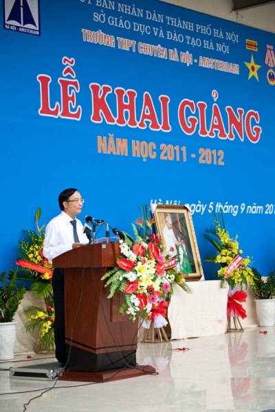 - Tôi chỉ có một lời đề nghị đối với học sinh trường Hà Nội - Amsterdam: các em là những con người thông minh, tài năng; mong các em phát huy thế mạnh đó và phải khắc phục một nhược điểm là không được ích kỉ. Các em được hưởng sự quan tâm đặc biệt của xã hội, gia đình, thì các em phải có trách nhiệm đối với xã hội, gia đình và nhà trường; tức là phải nỗ lực đóng góp cho cộng đồng. Không phải vì vào được trường Ams mà nghĩ mình là nhất, mà các em hãy suy nghĩ một cách thấu đáo là mình được nhiều thì mình càng phải có trách nhiệm.