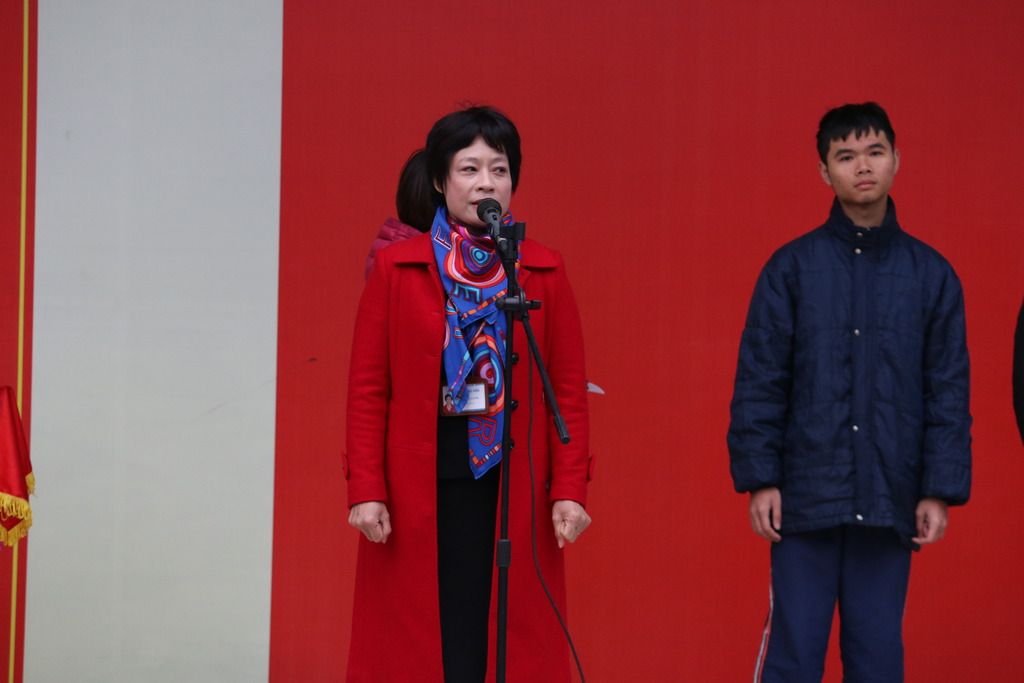 Nhà giáo Lê Thị Oanh, Bí thư đảng ủy, hiệu trưởng nhà trường nhiệt liệt tuyên dương thành tích của đội tuyển quốc gia năm nay