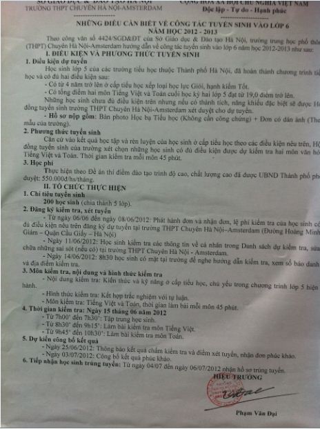 THÔNG TIN TUYỂN SINH VÀO LỚP 6 TRƯỜNG THPT CHUYÊN HÀ NỘI - AMSTERDAM NĂM HỌC 2020 - 2021
