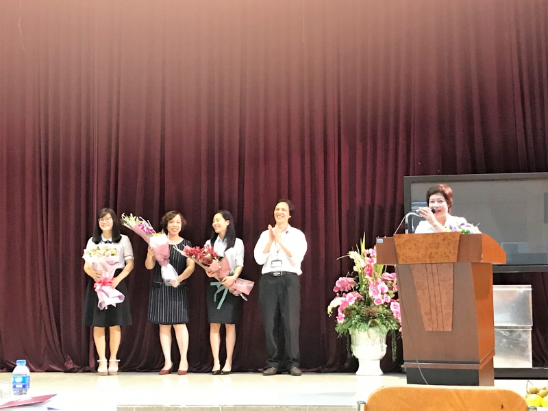 Mở đầu cuộc họp, Nhà giáo Lê Thị Oanh – Hiệu trưởng Nhà trường thay mặt Ban giám hiệu lên tổng kết việc triển khai và thực hiện nhiệm vụ giáo dục của toàn trường vào tháng 4 năm 2018.