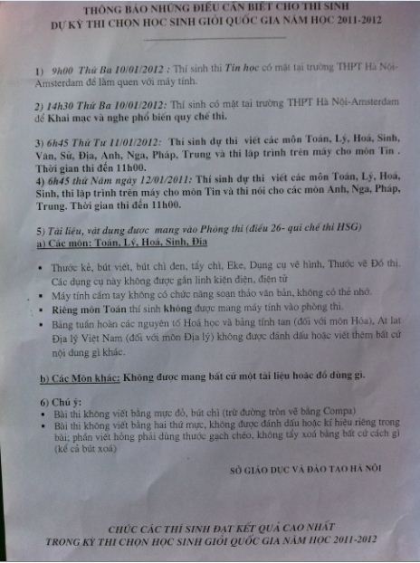 Lịch thi vào lớp 10 năm học 2011 - 2012 (23/05/2011)